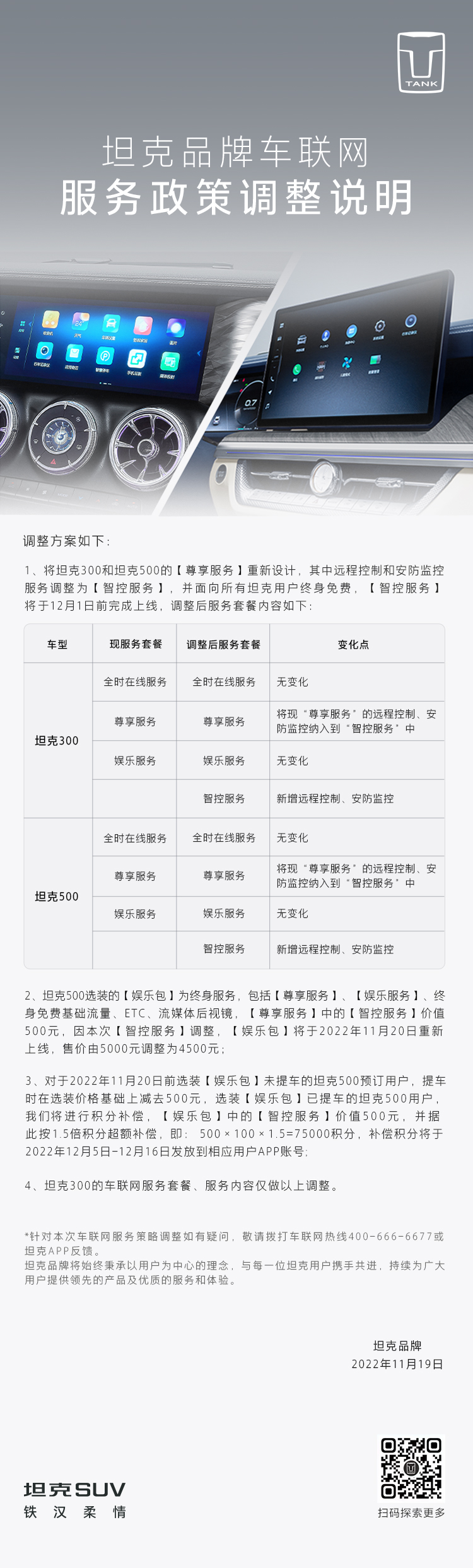 坦克品牌车联网服务政策调整说明