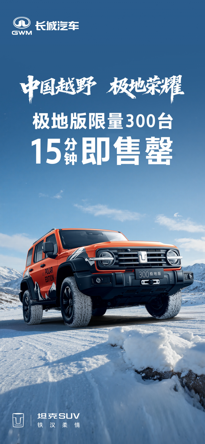 中国越野,极地荣耀。从南极冰原到广州展台,从科考实战到用户生活,坦克300极地版,不仅是一款用户共创车型,更是一枚极地荣耀勋章。它承载着国家极地探索的使命,凝聚着用户共创的智慧,肩负着坦克品牌的越野信仰,更以硬核越野实力致敬为国探极的至高荣耀,刷新中国越野的新高度。